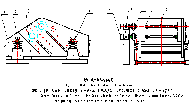 泥浆振动筛由筛网、振动源、筛体、减振装置、支腿、电动机等组成(见附图)。